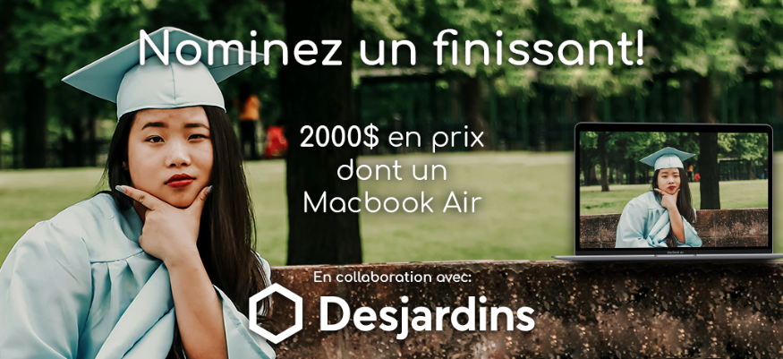 Du 11 au 23 juin, la population est invitée à visiter la page Facebook du 92.1 FM pour nominer un étudiant ou une étudiante finissant le secondaire cette année pour qu’il ait la chance de gagner un des trois prix d’une valeur totale de plus de 2000$ : 1er prix -MacBook Air, 2e prix -Air Pods pro, 3e prix -carte prépayée 150$.