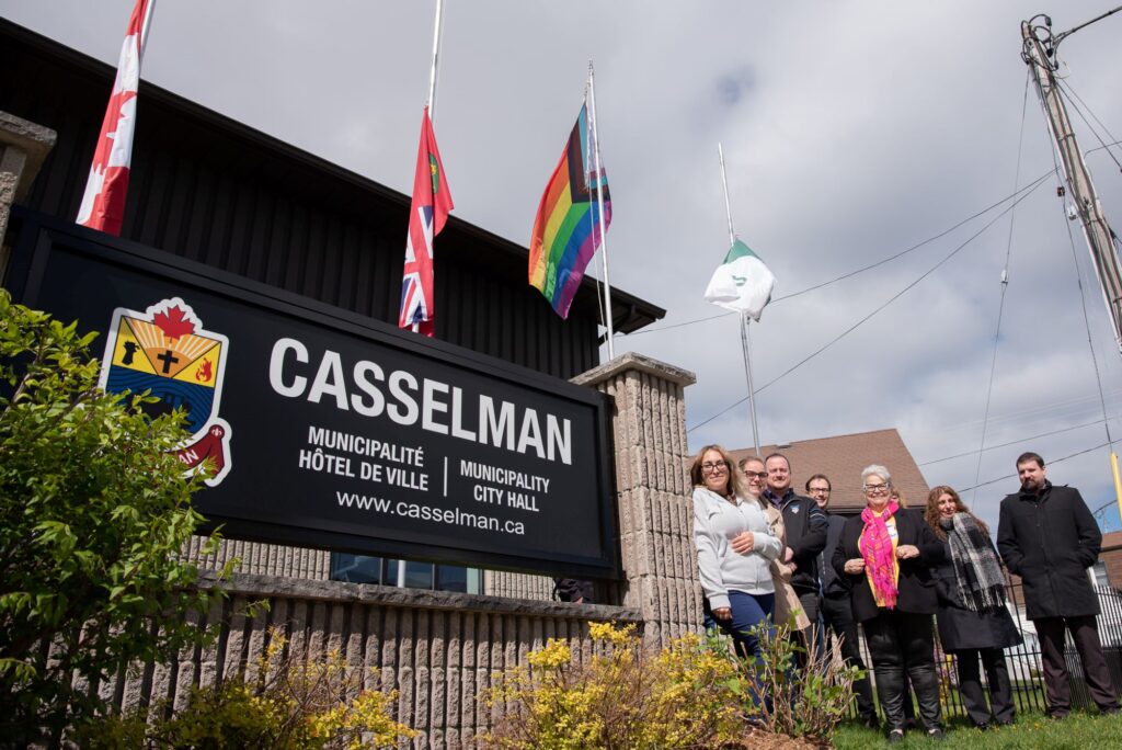 Pour souligner la Journée internationale contre l’homophobie, la transphobie et la biphobie, le mercredi 17 mai, la mairesse de Casselman Geneviève Lajoie s’est jointe aux membres de l’administration pour hisser le drapeau de la Fierté, en appui à la communauté 2SLGBTQ+.
