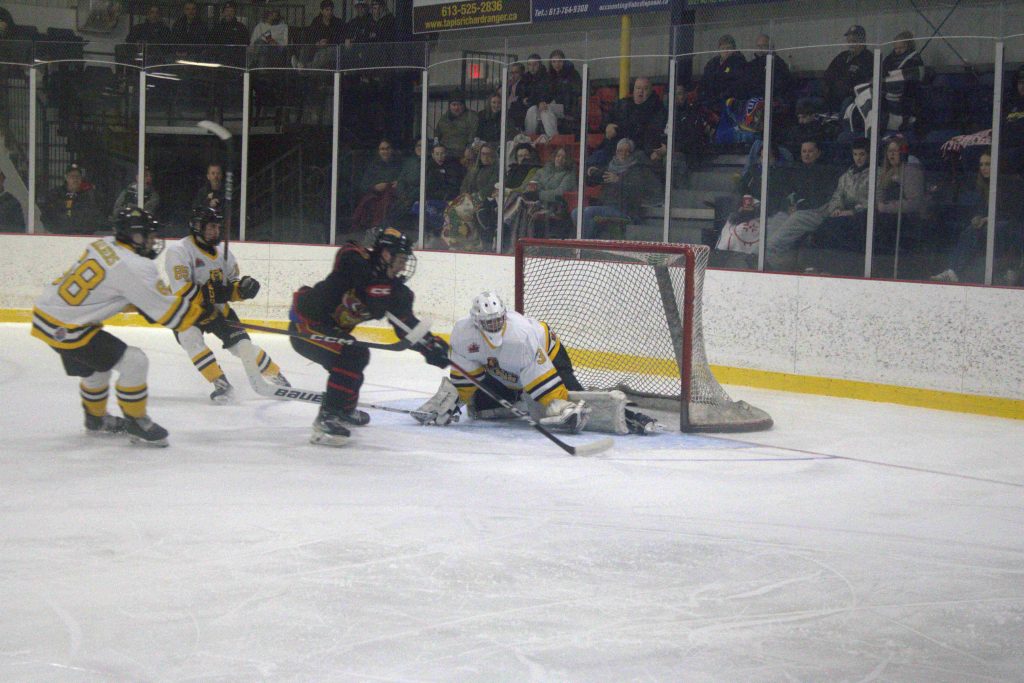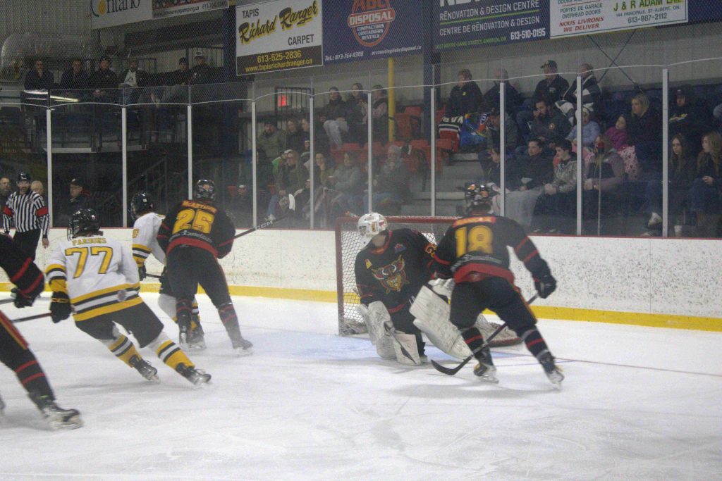 Les Vikings de Casselman ont mis un peu de temps à se mettre en marche, hier soir, mais une fois qu’ils ont « retrouvé leurs jambes », les Bears de Smiths Falls n’y ont vu que du feu. Les Vikings ont inscrit trois buts sans réplique au deuxième engagement en route vers une victoire de 7-0 dans le match initial de la série finale de la Ligue de hockey junior de l’Est ontarien disputé devant 368 partisans au Complexe sportif J.R. Brisson.